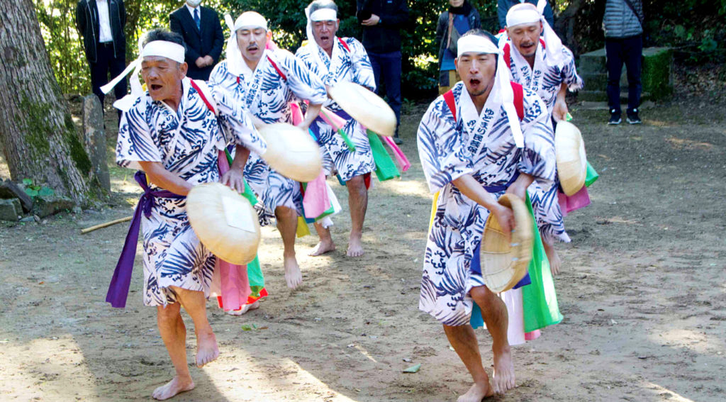 小原:はい。これは伝承の経緯がはっきりしてて、江戸時代の終わりか明治の初期かに、琉球船が長いこと風待ちしてたそうなんです。船が壊れたか、天候のせいか分かりませんが。そのときに乗組員が歌を教えてくれてそれが『湯泊傘踊り』として今も伝わっていると。最後の庄屋の息子がその継承者となり、家元となって歌い継いできたんだということらしいです。これは完全に琉球音階です。『まつばんだ』も琉球音階というのが有力な解釈なので、こちらも伝承の経緯は似たようなものかもしれない。もっとも屋久島では日本風の短調の曲に変わってしまってるんですが。